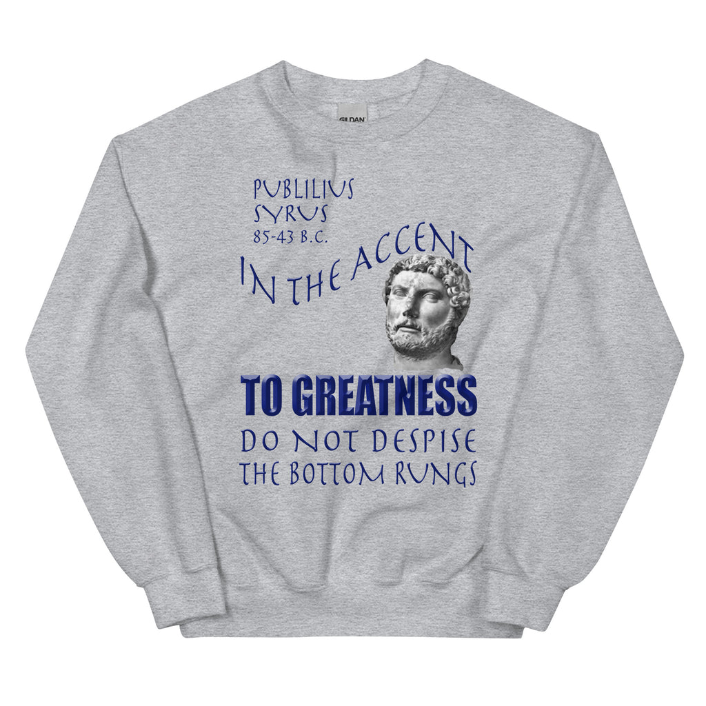 PUBLILIUS SYRUS -IN THE ACCENT TO GREATNESS DO NOT DESPISE THE BOTTOM RUNGS